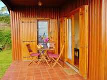 Die aus Pinienholz gebauten Bungalows sorgen durch ihre ruhige Lage im Grünen für einen entspannten Aufenthalt.