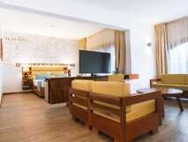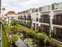 Die 50 Zimmer und Suiten verfügen über Bad mit Föhn, Klimaanlage, Satelliten-TV, Telefon, WLAN (gegen Gebühr), Minibar, Mietsafe, Balkon oder Terrasse. Teilweise mit Meerblick. Zur Ausstattung gehören ein Restaurant, eine Bar und eine Strandbar, ein kleiner Pool mit Terrasse (Strandtücher, Liegen und Schirme gegen Gebühr), Spa mit Sauna, Jacuzzi und Wellnessangebote. Abendunterhaltung gibt es mehrmals pro Woche.